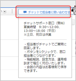 広告管理画面の右上「チャットで担当者に問い合わせる」を選択すると、すぐチャットが開始され、ヘルプの方に詳細を確認することができます。