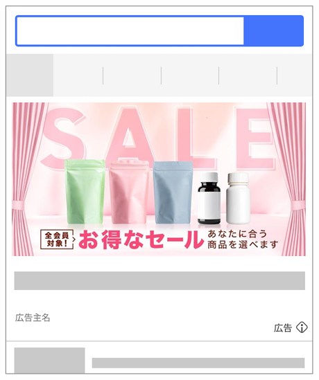 美容・健康食品の業種においては、使用目的がわかるような人物のビジュアルがCTR向上に寄与しています。例えば、