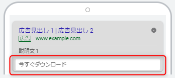 広告の説明文の下部に「アプリダウンロードのリンク」ページを表示させる機能です。ウェブサイトとアプリを所持している場合にアプリへの誘導が出来るようになります。(※AppStore、Google Playのどちらでも可能)