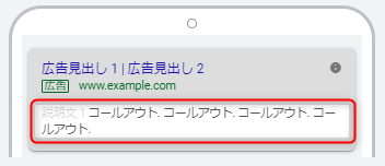 検索広告が表示された際に、広告文下部にテキストで商品やサービスの情報を表示できる機能です。サイトリンクとは違いリンクは貼れないですが、テキストのみで広告文に追加しきれなかった情報などを追加することができます。季節ごとの特典や送料情報などをアピールするのに活用できます。こちらもスケジュール設定ができるので特定の期間のみ表示させることができます。