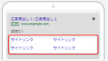 検索広告において、広告として設定している最終URLとは別のサイトリンクを広告文の下部に表示できる機能です。様々なリンクを先を表示することでユーザーごとの目的に合ったページへ誘導できます。広告の表示面積も大きくなり目立つようになるので、クリック率などの向上も期待できます。