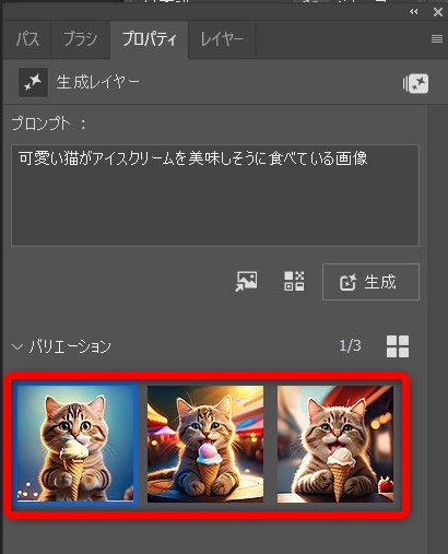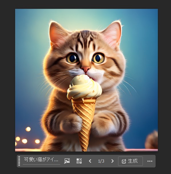 それでは、今回はPhotoshopの画像生成機能を使って、猫がアイスクリームを美味しそうに食べる画像を、作ってみましょう!