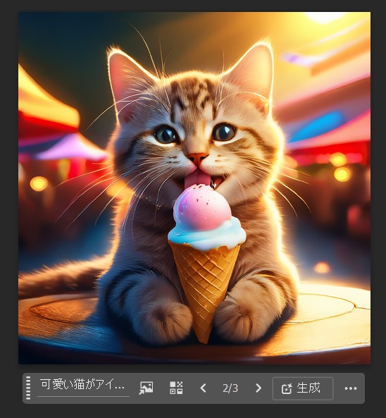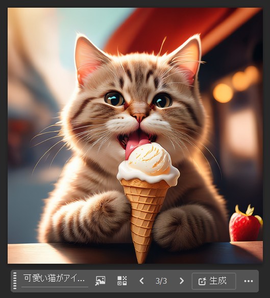 今回は『可愛い猫がアイスクリームを美味しそうに食べている画像』と記入しました。