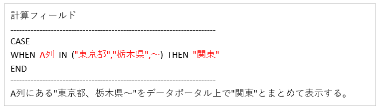 それでは計算フィールドから、CASE関数を使って例1と例2を作成していきたいと思います。