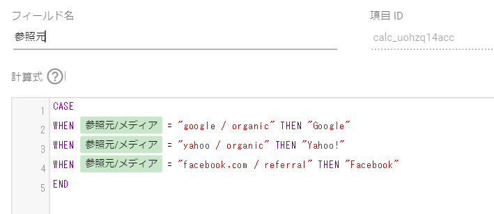 データポータルでの関数もエクセルの関数と同じように、文字列に「””」をつけたり複数の要素がある場合は「,」をいれたりしなければいけません。数式が間違っていれば、計算式の数字部分にエラー表示されますので、その場合は再度、上記部分にミスがないか確認してみて下さい。