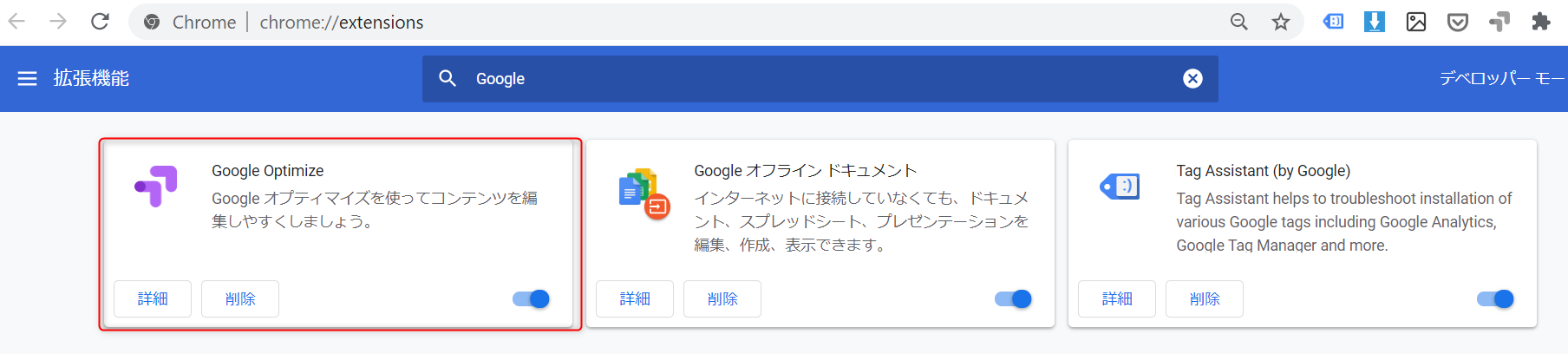 ・Chrome でオプティマイズ拡張機能を追加