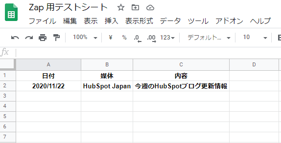 下準備として事前にスプレッドシートで、どのような項目名を確認したいかを任意で項目作成しておきます。