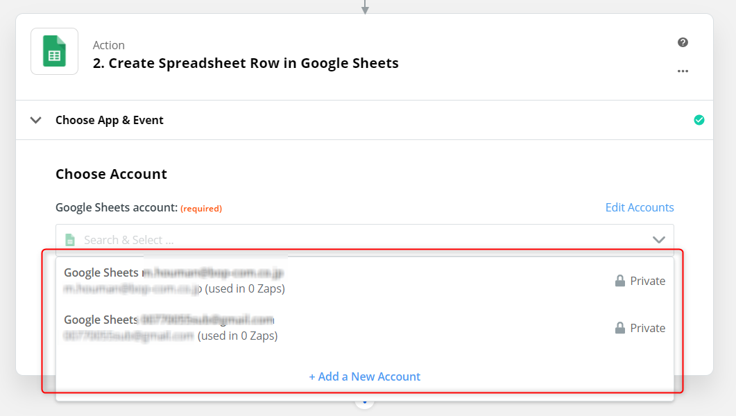 「Choose Account」から接続させたいスプレッドシートのアカウントを選択します。