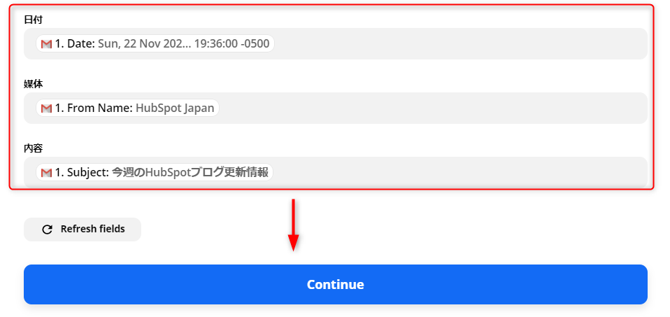 このようにそれぞれの項目に追加されていたら、Zap作成の完了です。