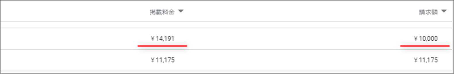 上記のようにレポートでキャンペーンごとに「掲載料金」と「請求額」が表示されます。