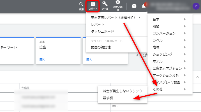 ②「事前定義レポート(詳細分析)」→「その他」→「請求額」を選択します。