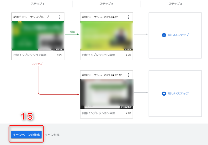 これで動画広告シーケンスキャンペーンの作成が完了します。
