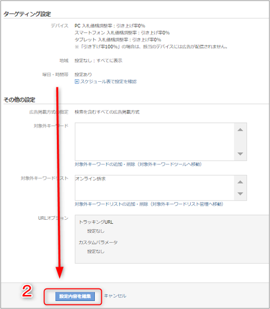 ・キャンペーンの入札方法が「個別クリック単価」「個別クリック単価」のいずれの場合