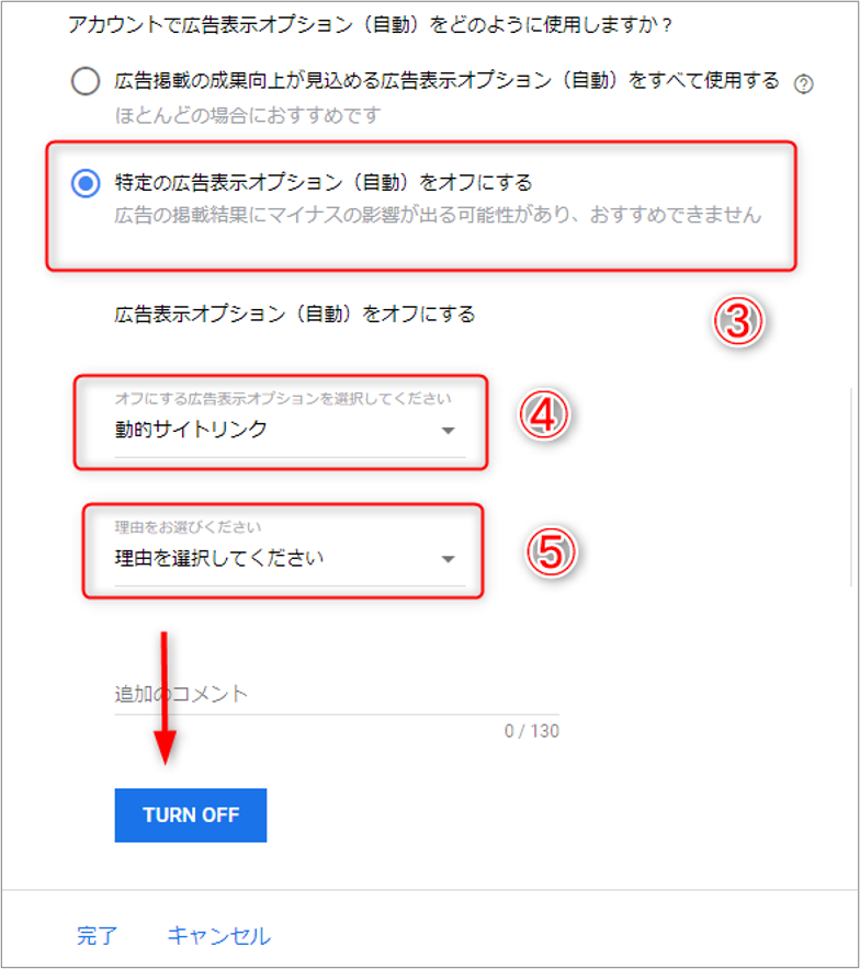 ④オフにする広告表示オプションを選択します。